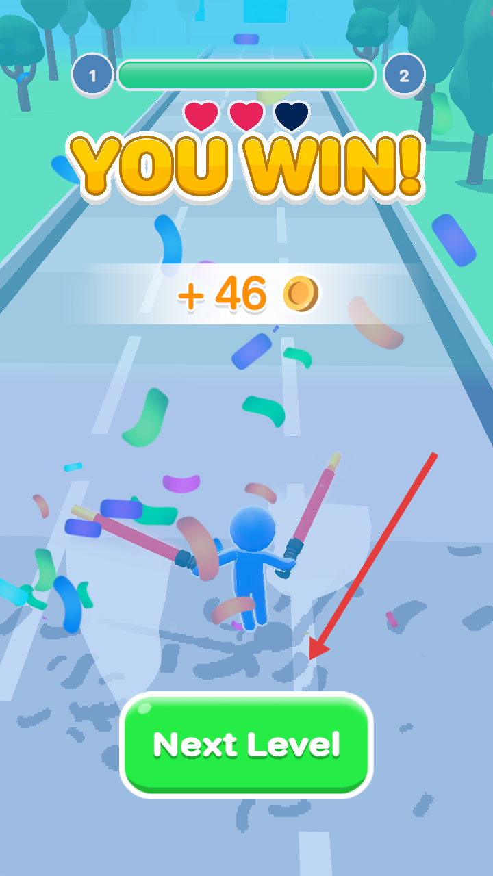 4、关卡胜利后点击NextLevel按钮进入下一关,继续挑战更多道路场景的破坏关卡。