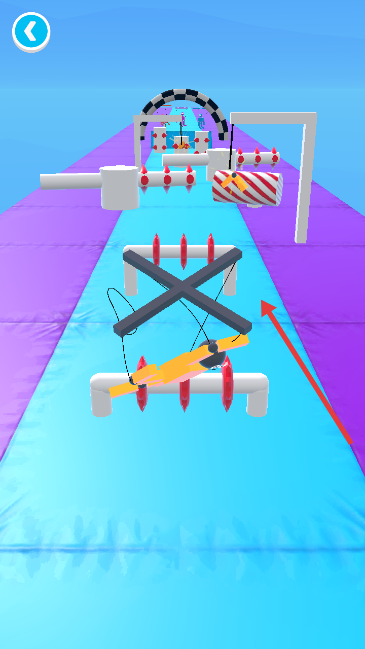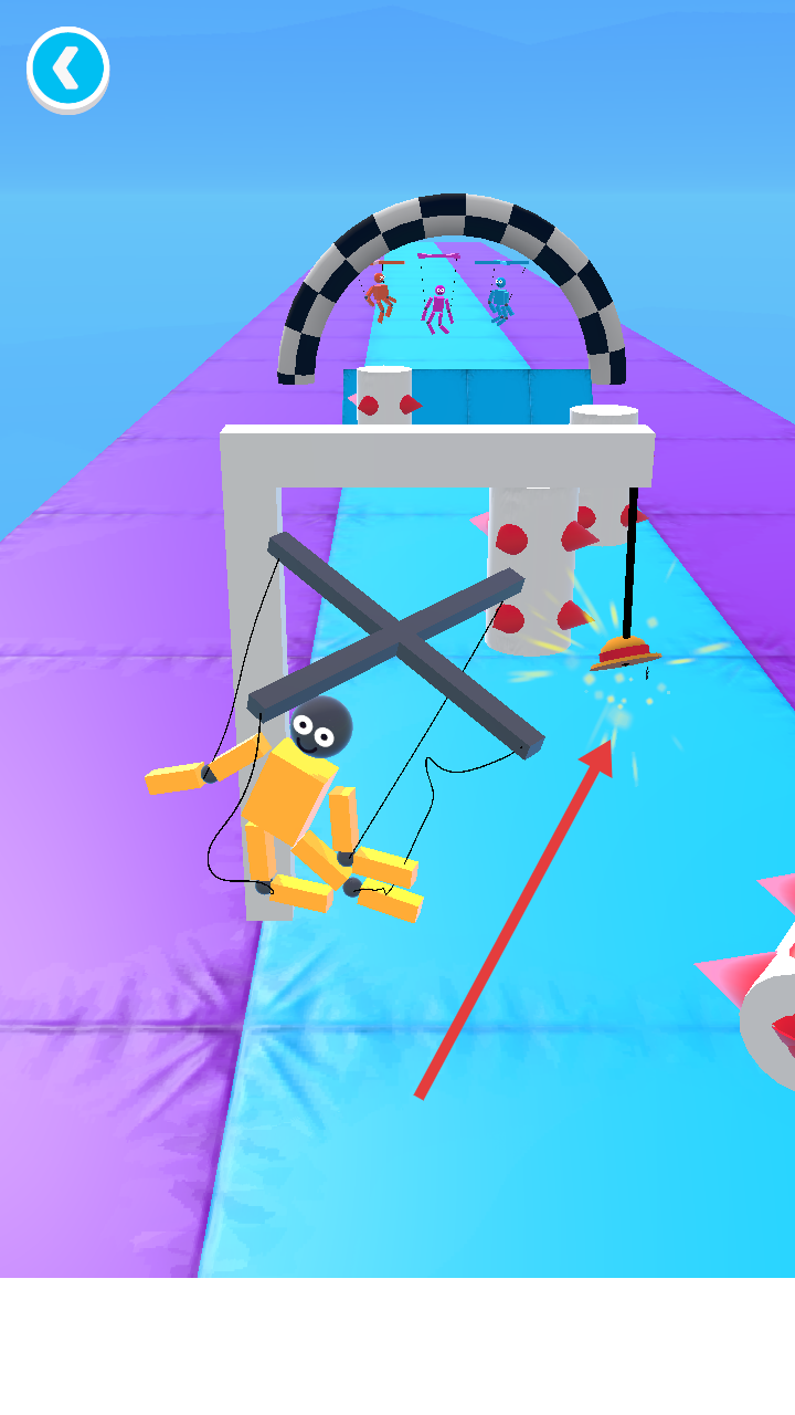 2、操控木偶角色移动,避开赛道上的各类障碍,向关卡终点推进。