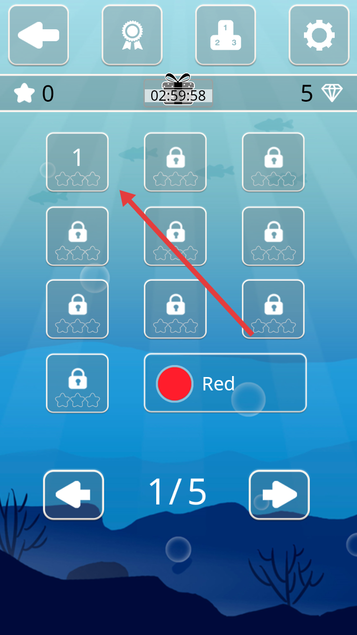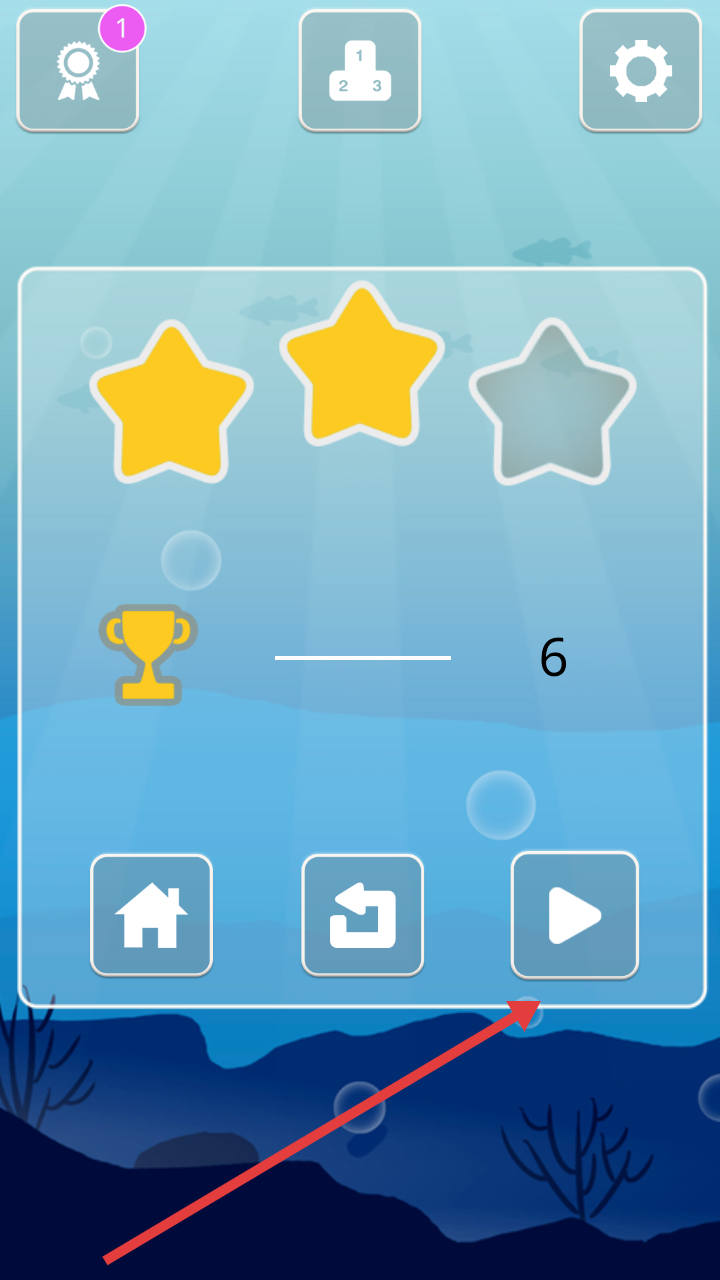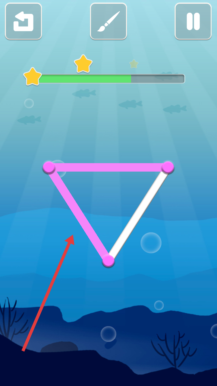 3、在水下场景滑动绘制连线,完成几何图形连线任务,收集星星提升关卡进度。