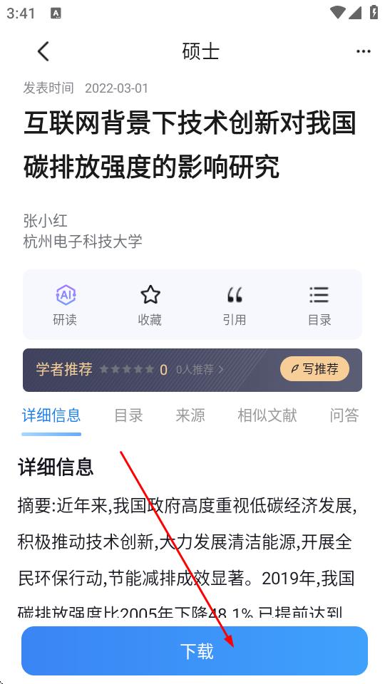 3、在论文详情页面,点击下方的下载按钮。