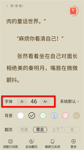 2、在小说阅读页面,点击设置选项,弹出字体设置菜单。