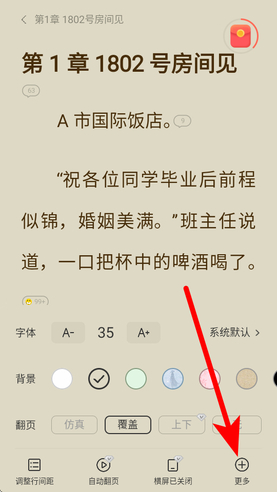 3、在设置界面中,点击更多选项,进入阅读设置页面。