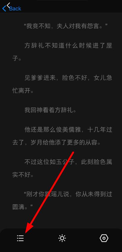 2、在小说阅读界面,点击屏幕底部左侧的目录图标类似三条横线的图标。