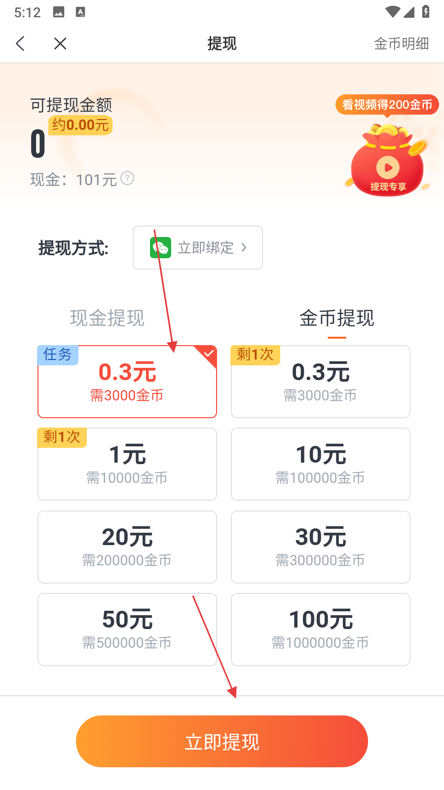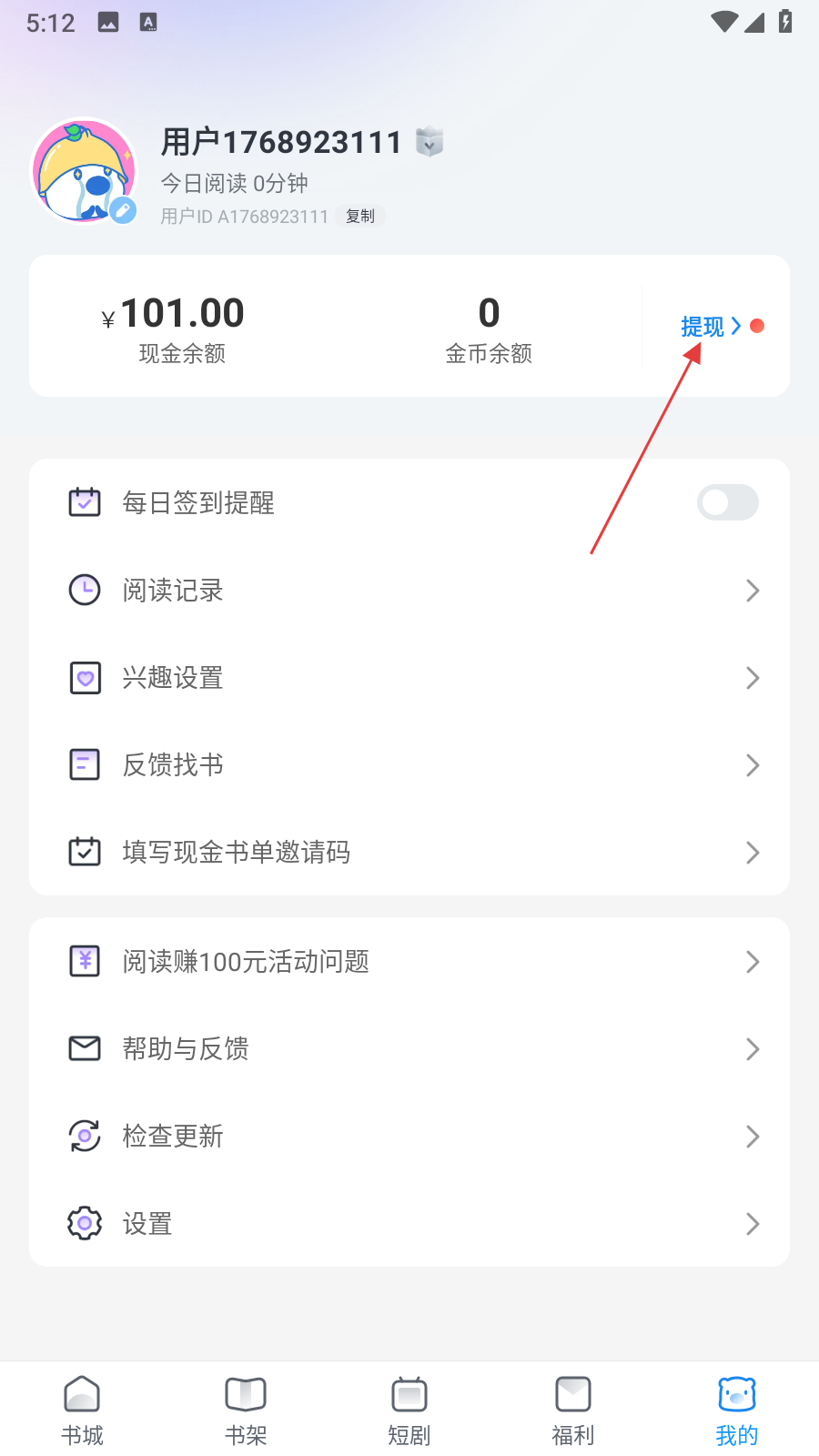2、在个人页面中,找到提现选项并点击,进入提现页面。
