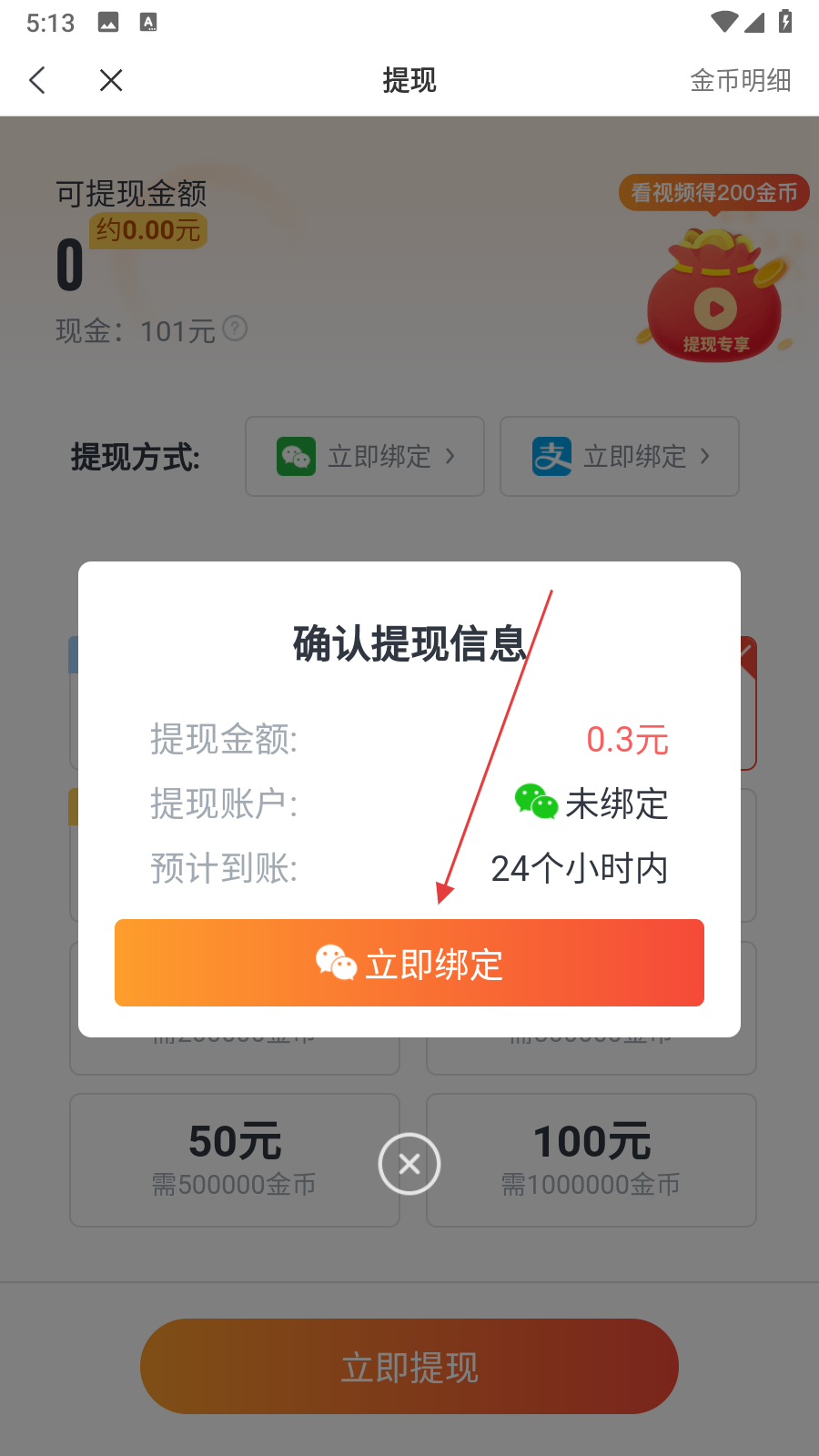 4、会弹出绑定弹床,点击立即绑定微信,按照提示完成微信账号的绑定操作即可。