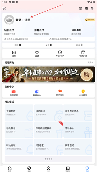 1、启动咪咕视频的应用,进入首页点击右下我的图标。