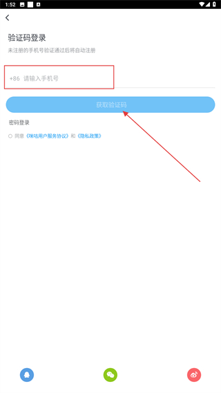 3、在验证码登录的页面内,输入手机号后点击获取验证码。