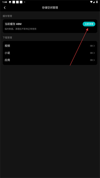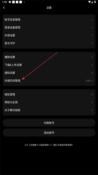3、进入设置的界面内,找到并点击存储空间管理的按钮。