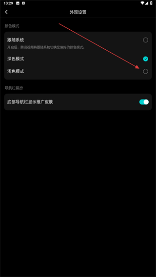 4、在外观设置的页面内,勾选浅色模式右侧的按钮即可切换成功。