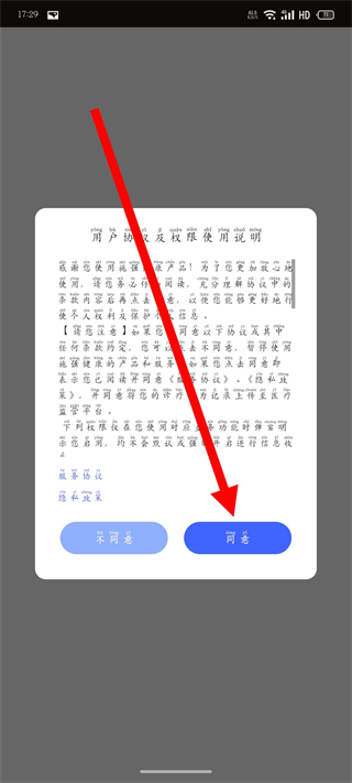 1、打开施强健康,在用户协议弹窗中点击同意。