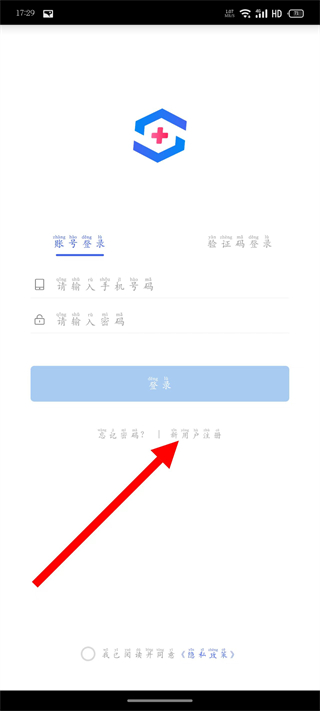 2、在登录页面,点击新用户注册,进入注册页面。
