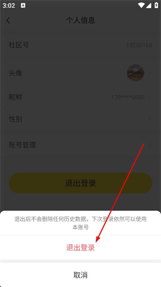 3、在个人信息页面中,找到并点击下方退出登录按钮。