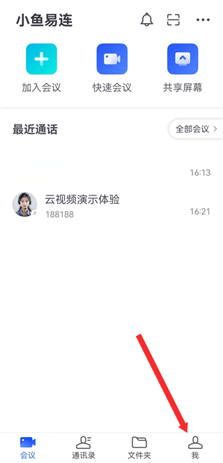 1、打开小鱼易连APP,点击底部导航栏的我,进入个人页面。