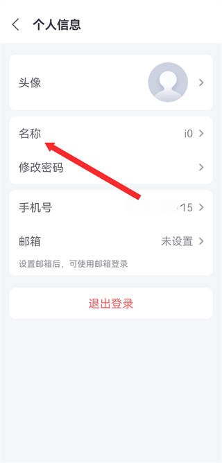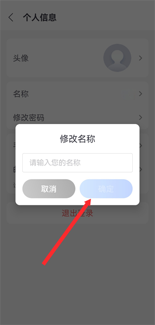 3、在个人信息页面,点击名称的选项,弹出修改名称对话框。