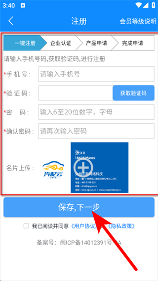 3、在页面依次填写手机号等信息后,点击保存下一步,完成后续操作。