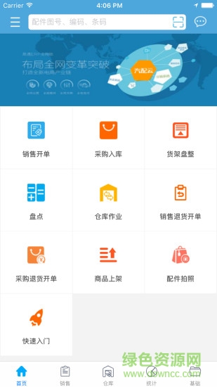 条码识别及开单功能覆盖全部业务场景,单据、配件、货架支持条码一键定位;
