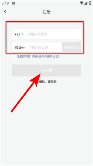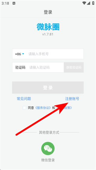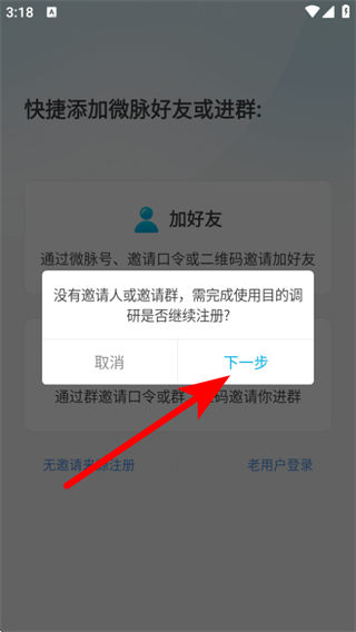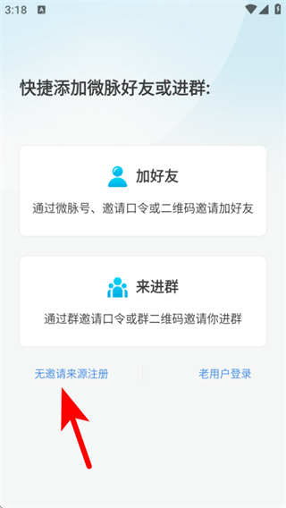 1、打开微脉圈APP,在注册界面点击无邀请来源注册。