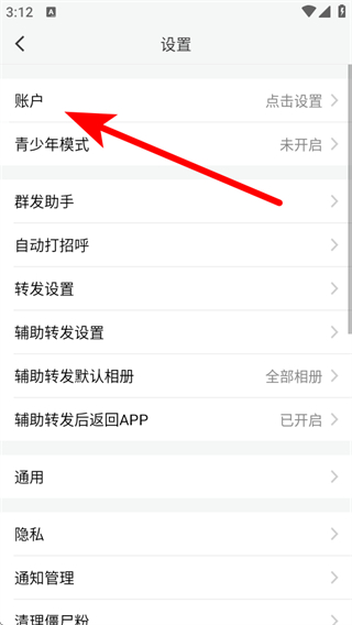 2、在设置的页面,需要点击账户按钮,进入账号设置的页面。