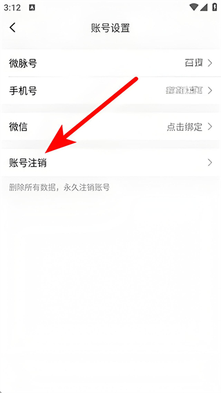 3、在账号设置的页面,点击账号注销,进入账号注销提示页面。