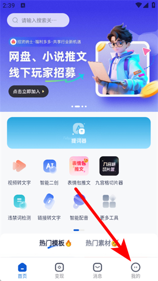创作猫免费版是专业的短视频制作平台,收录市面上多款热门视频创作工具,涵盖去水印、违禁词检测、转链接文字等功能,能为用户带来优质使用体验,同时平台提供海量剧本在线分享,可助力用户不断提升创作技巧,更轻松地制作出精彩短视频,满足各类短视频创作需求,适合有短视频制作需求的用户使用。