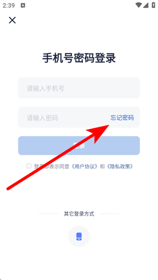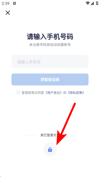2、在个人页面的登录界面,点击密码样式的图标,进入手机号密码登录页面。