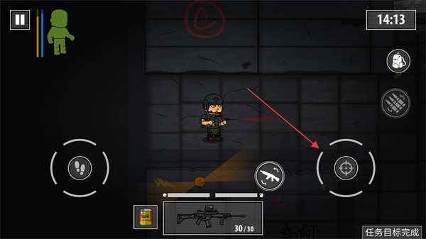 3、发现敌人后,点击右侧瞄准按钮瞄准,再点击射击按钮攻击敌人。