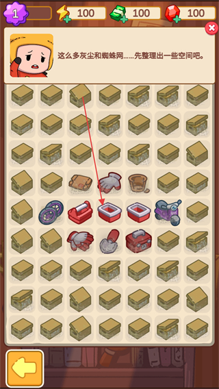 1、清理满是灰尘和蜘蛛网的区域,点击物品整理出空间。