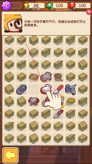 2、单次手套不足,通过合成可获得更多道具,按提示操作合成。