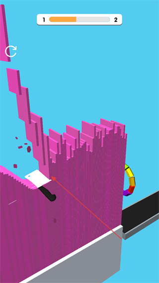 切倒一切是一款主打切割玩法的休闲益智闯关作品,采用简约画面设计,视觉风格简洁清爽却能带来丰富感官体验,操作核心围绕切割竖立挡板展开,需切除出一条顺畅道路,让小球沿切割轨迹滚落并穿过终点圆环,小球滚落距离越远,获得的奖励越丰厚,整体玩法轻松休闲,能有效帮助释放压力、缓解负能量,适合日常放松体验。