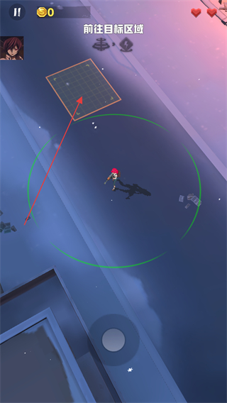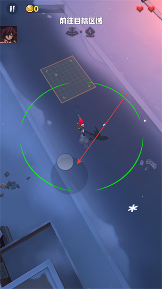 2、到达目标区域后,准备应对僵尸,利用虚拟摇杆控制角色移动。