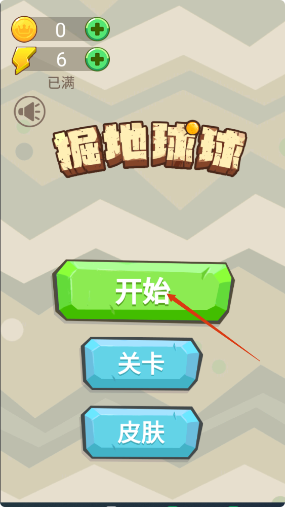 1、进入【掘地球球】游戏,点击【开始】按钮,开启挖掘挑战,准备操控掘地球球开展地下挖掘任务。