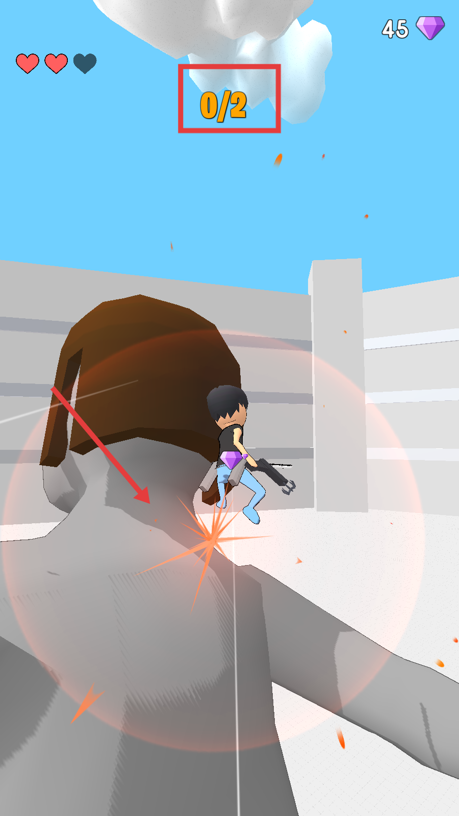 1、通过【拖动移动】控制角色,【点击发射钩子】攻击目标。