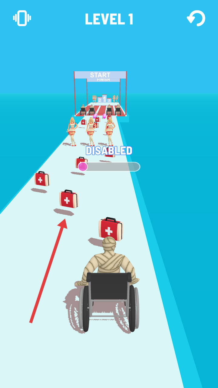 1、以病人竞速为独特主题,角色设计贴近生活,如戴护具、持康复器械,打破传统跑酷角色设定,更具感染力。