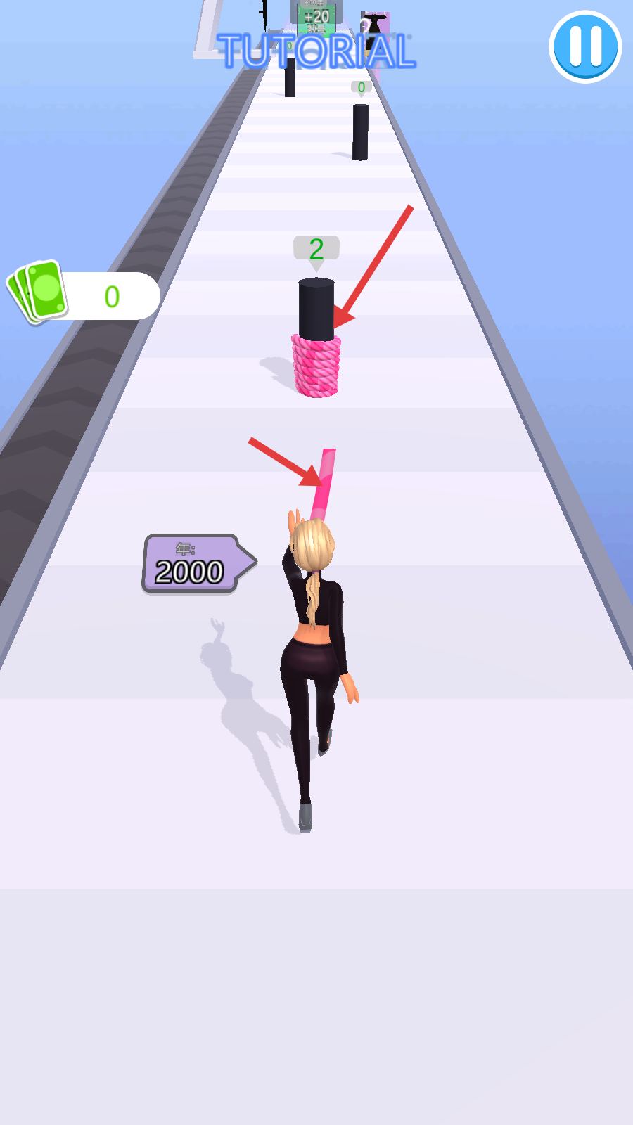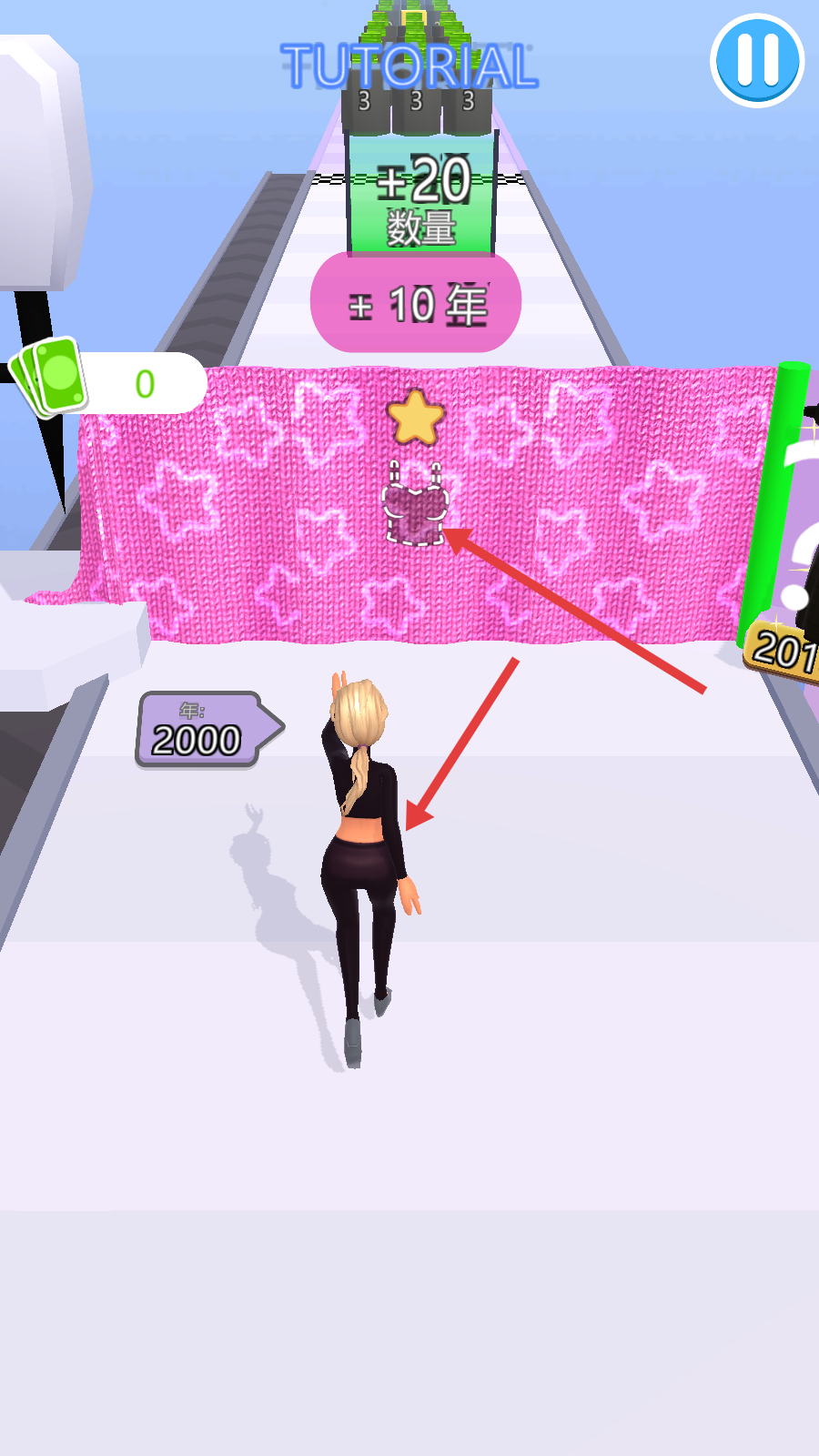 1、在【TUTORIAL】关卡中,控制角色前进将柱子变粉色。