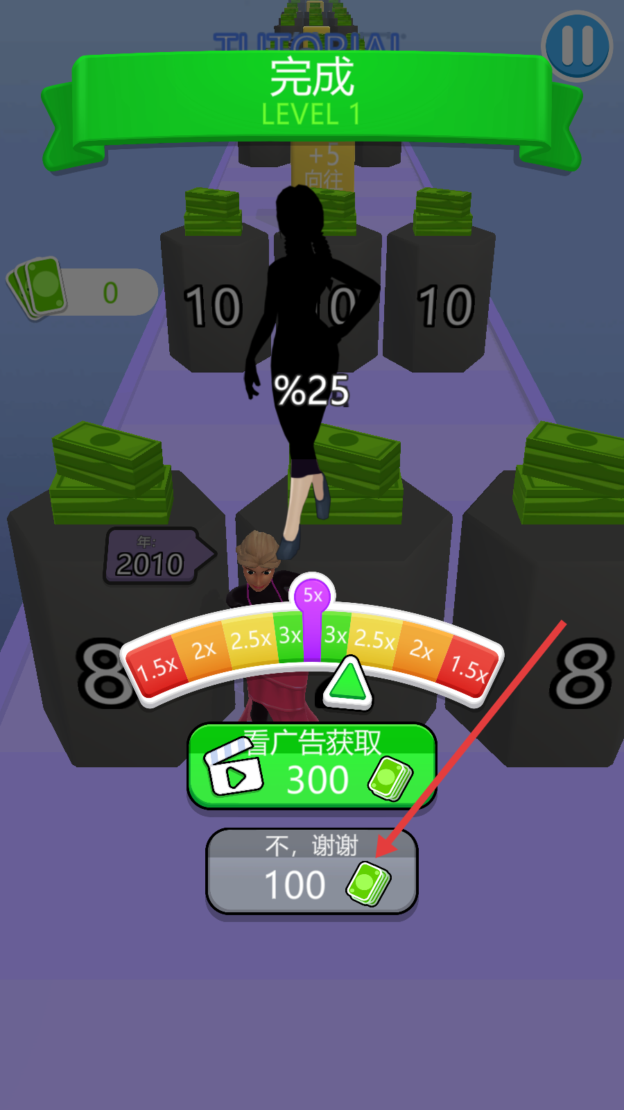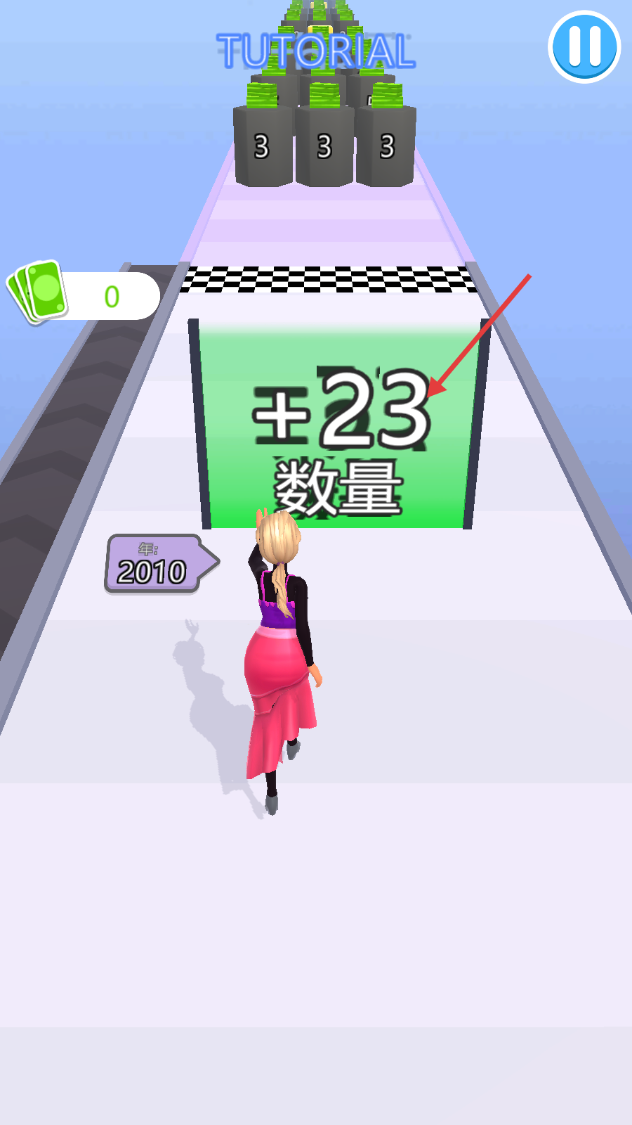 3、获取【+23数量】的绿色标牌奖励,冲向终点。