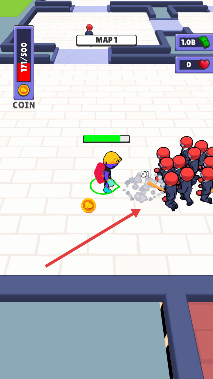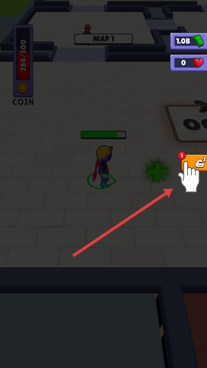 3、拾取绿色加号道具,提升角色能力,继续推进关卡进度。