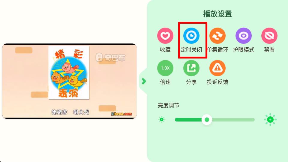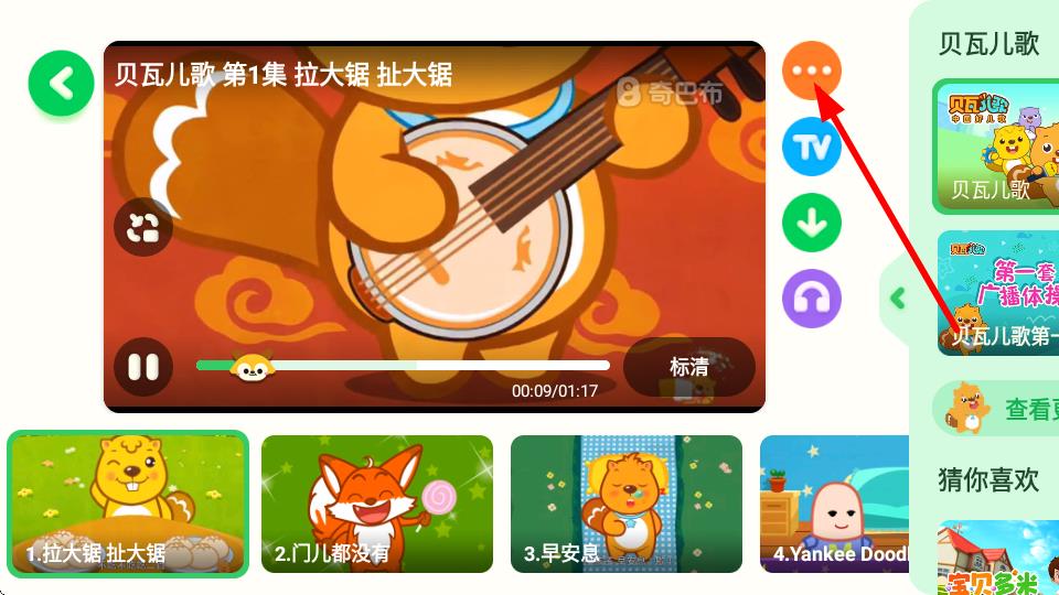 1、在爱奇艺奇巴布中打开想要播放的动画片,进入播放界面点击左上角的三个点标记进入播放设置界面。