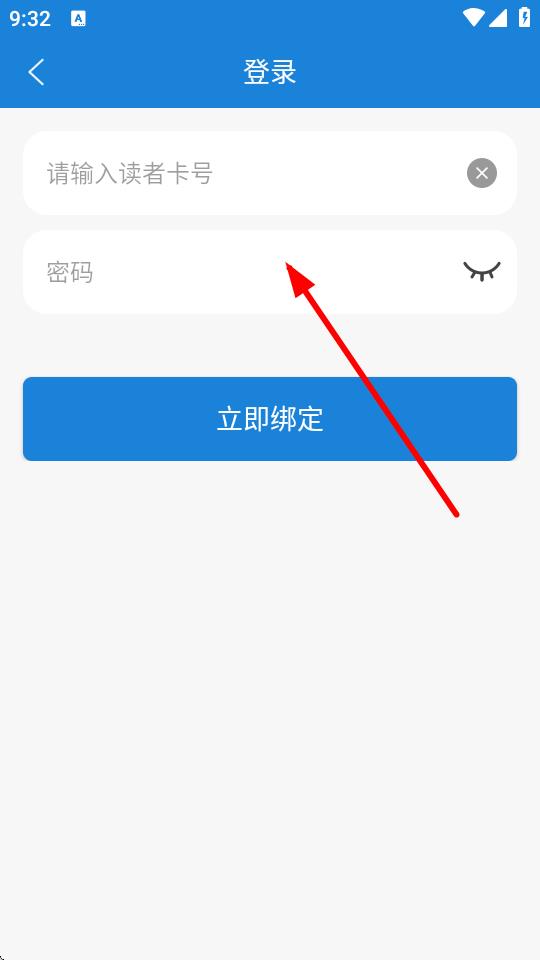 4、在登录页面,输入读者卡号和密码后,点击立即绑定完成操作。