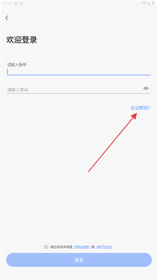 2、在登录的界面内,点击右侧忘记密码的按钮。