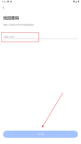 3、跳转至找回密码的页面内,输入账号点击下一步。