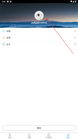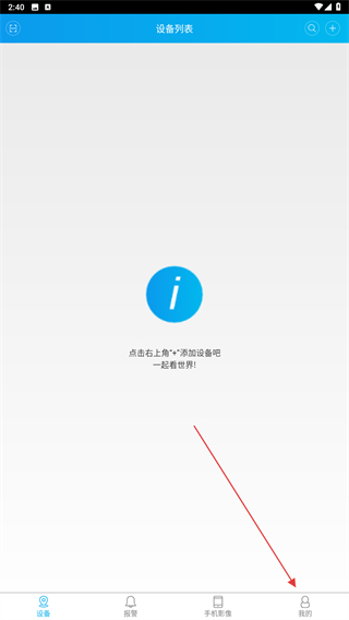 1、启动监控眼的APP,进入时点击下方导航栏我的图标。