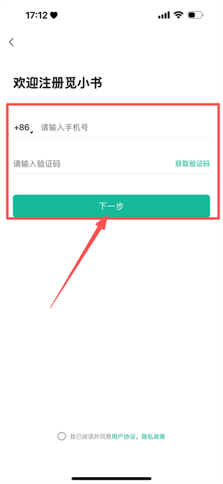 2、输入手机号,点击获取验证码并输入后,点击下一步。