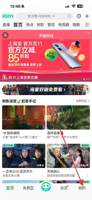 1、打开爱奇艺APP,点击右下角我的,进入个人页面。