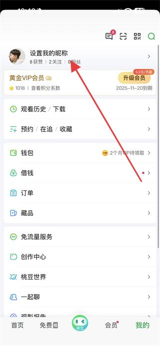 2、在个人页面中,点击昵称区域,进入个人主页。