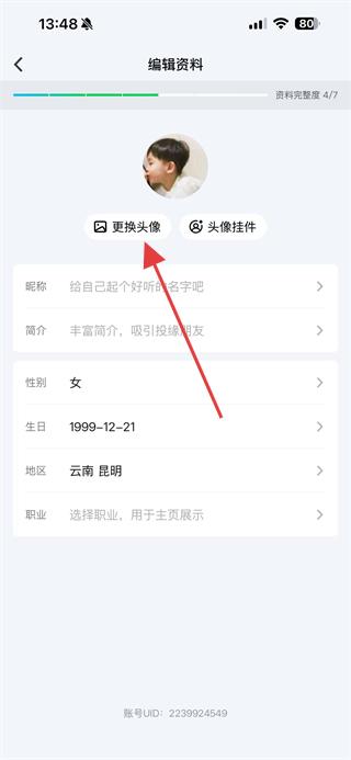 4、在编辑资料页面点击更换头像,即可选择图片更换爱奇艺头像。