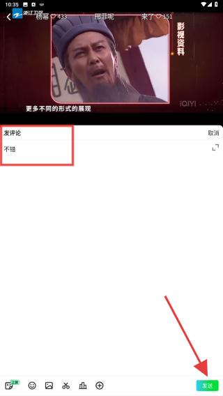 2、点击后会弹出发评论的内容框,用户可在此区域进行输入个人观点,输入后点击发送即可。