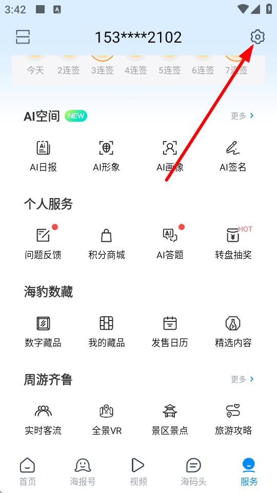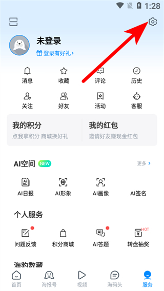 2、在服务页面,点击右上角设置图标,进入设置页面。