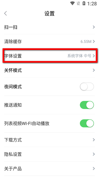 3、在设置页面,点击字体设置选项,进入字体设置界面。