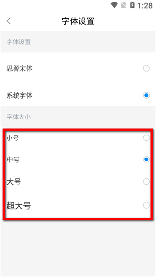 4、在字体设置界面,选择想要的字体大小选项,即可完成字体大小设置。