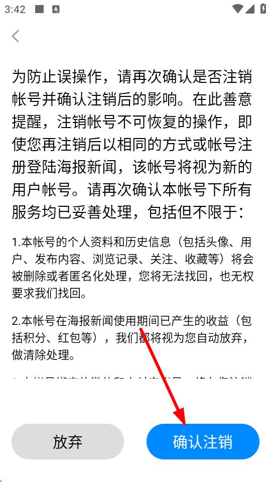 4、仔细阅读注销账号提示信息后,点击确认注销完成账号注销。